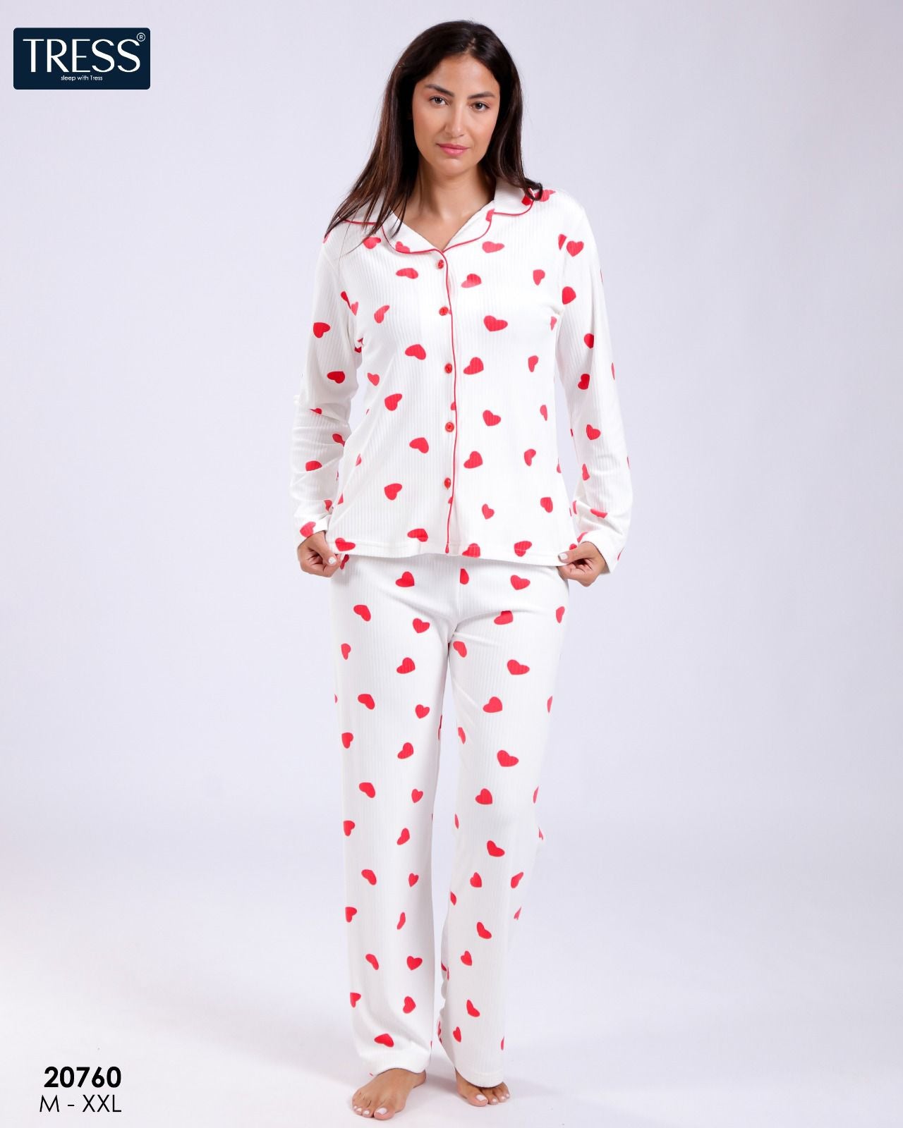 💕 Pyjama Femme en Velours à Motif Cœur 💕