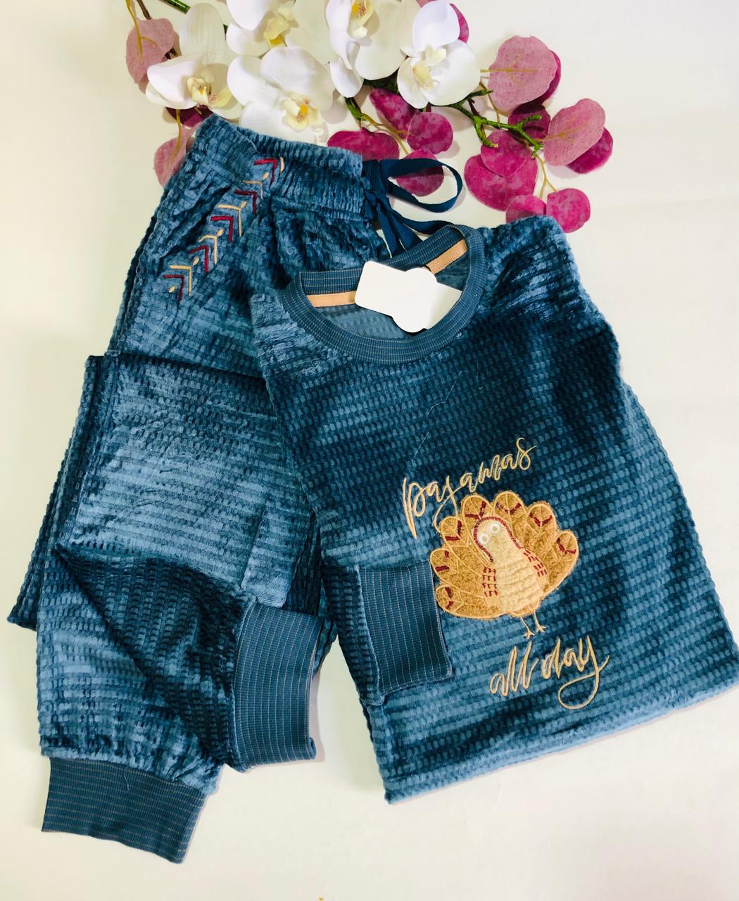 Ce pyjama en velours est l’allié parfait pour allier douceur et style pendant vos moments de détente. Disponible en trois couleurs tendance : rose poudré, bleu ciel et beige clair, il se distingue par son toucher velouté et son design élégant. Le haut est décoré d’un motif brodé original avec l’inscription "All Day", ajoutant une touche chic et décontractée. Les poignets et la taille sont élastiqués pour un ajustement confortable, tandis que le pantalon est muni de poches pratiques. Proposé dans les tailles M à XXL, ce pyjama est idéal pour une soirée cocooning ou pour se relaxer avec style.