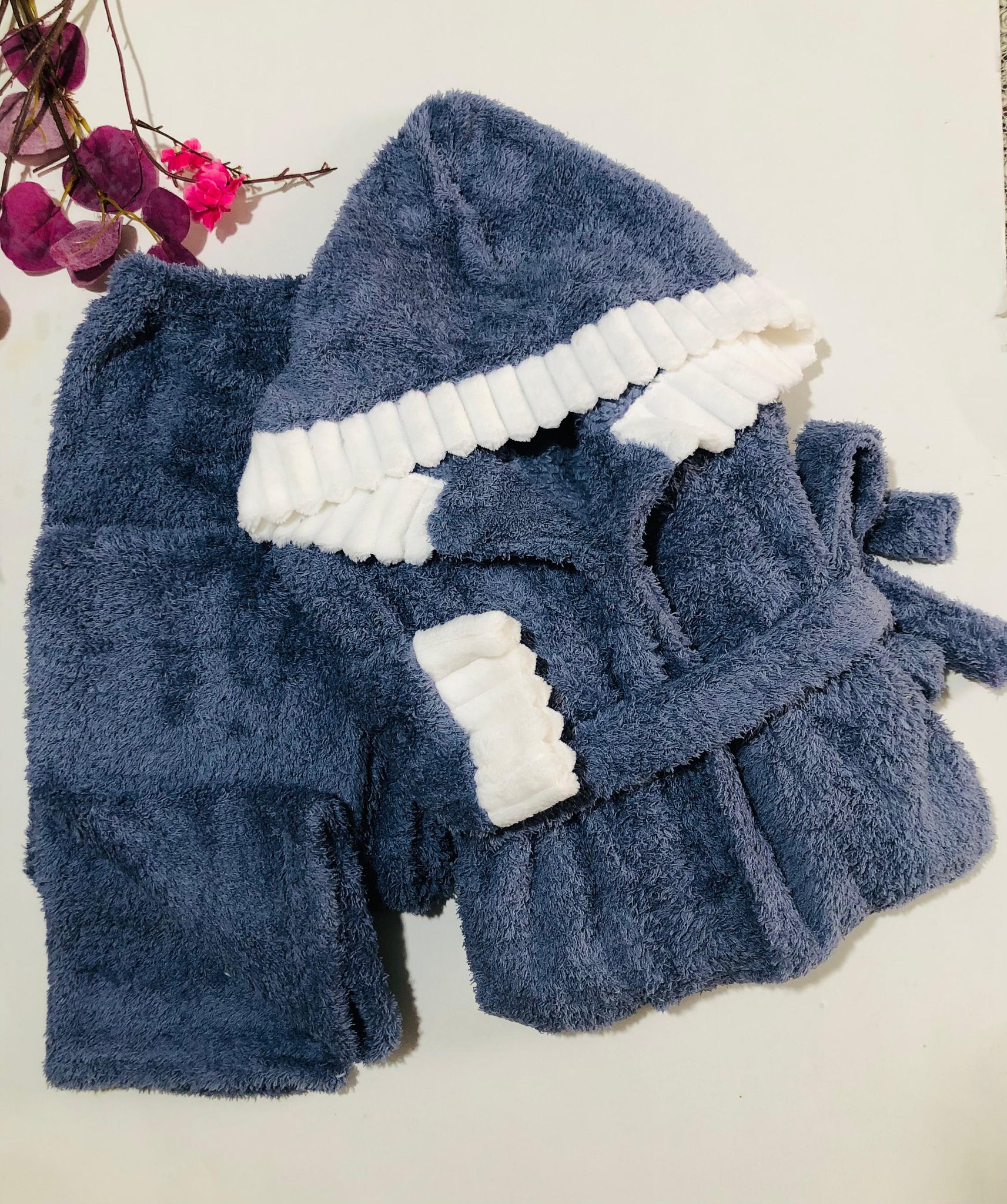 🧸 Pyjama Femme en Polaire avec Capuche – Bleu Gris | Ultra Chaud & Doux ❄️
